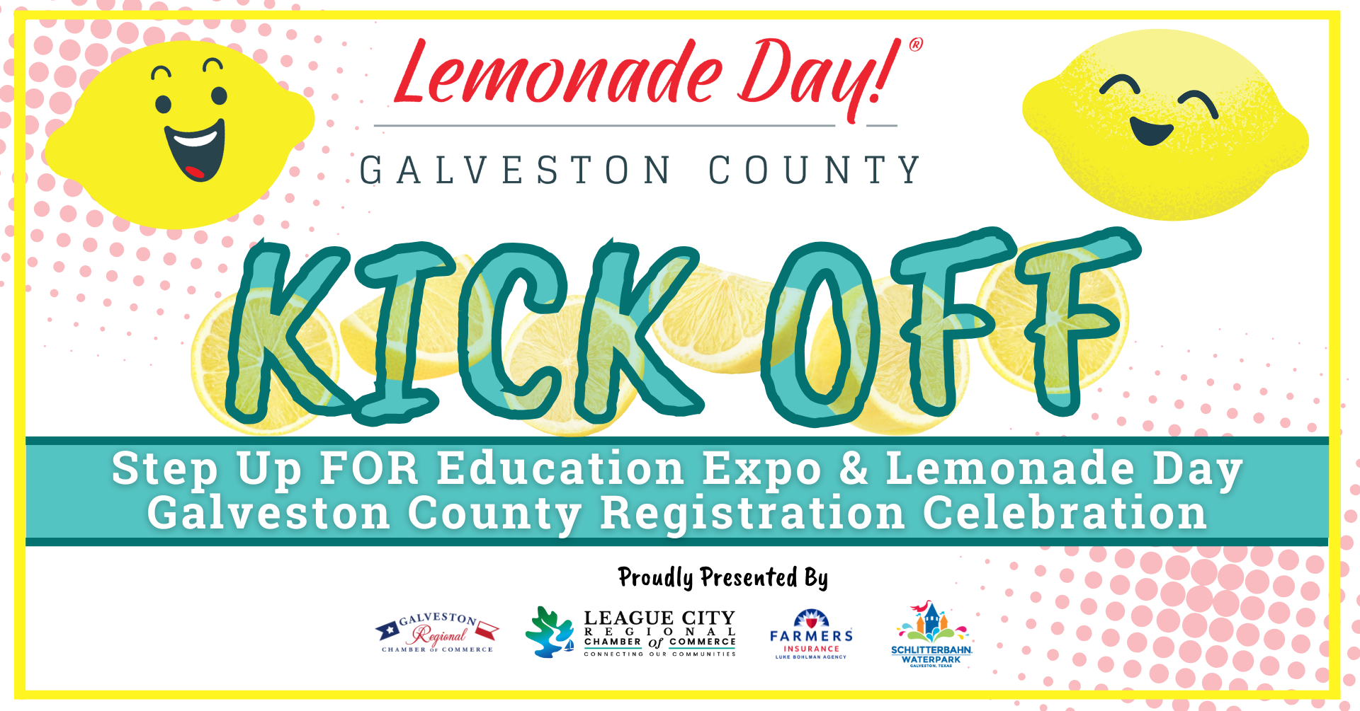 The first event of the 2026 lemonade season is the Step Up for Education Expo & Lemonade Day Galveston County Kickoff on Thursday, February 19, at Weis Middle School, 7100 Stewart Road, from 5 to 8 p.m. This fun-filled evening will include student performances, giveaways, music, delicious lemonade, and complimentary hot dogs provided by The Spot. Young entrepreneurs may register online in advance or sign up at the event to begin their Lemonade Day journey.